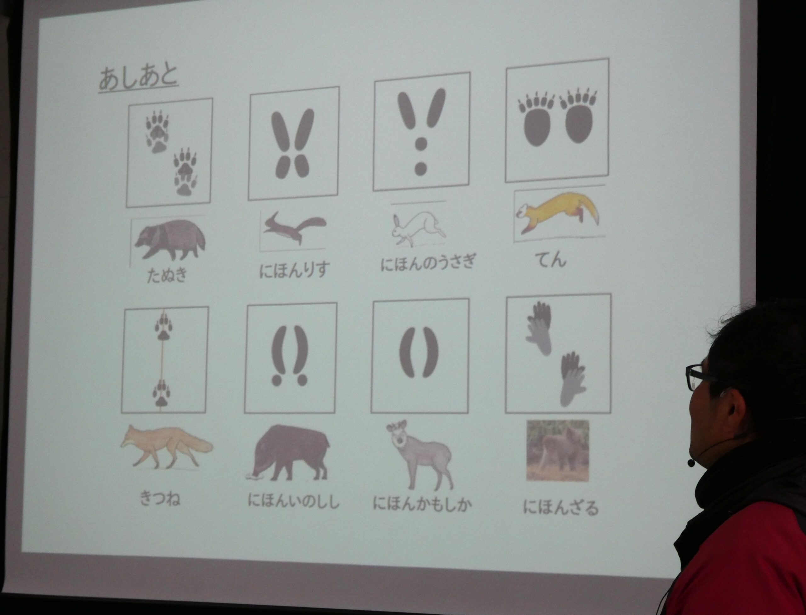 雪の上に残された動物の足跡を探し、足跡の形や歩き方の違いから動物の種類や行動を推理し楽しく学ぶことができました。