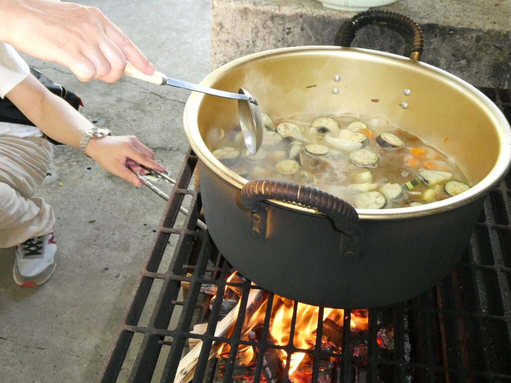 昼食のカレー作り、炊飯します。自然の中でリフレッシュし、新しい発見を楽しもう。
